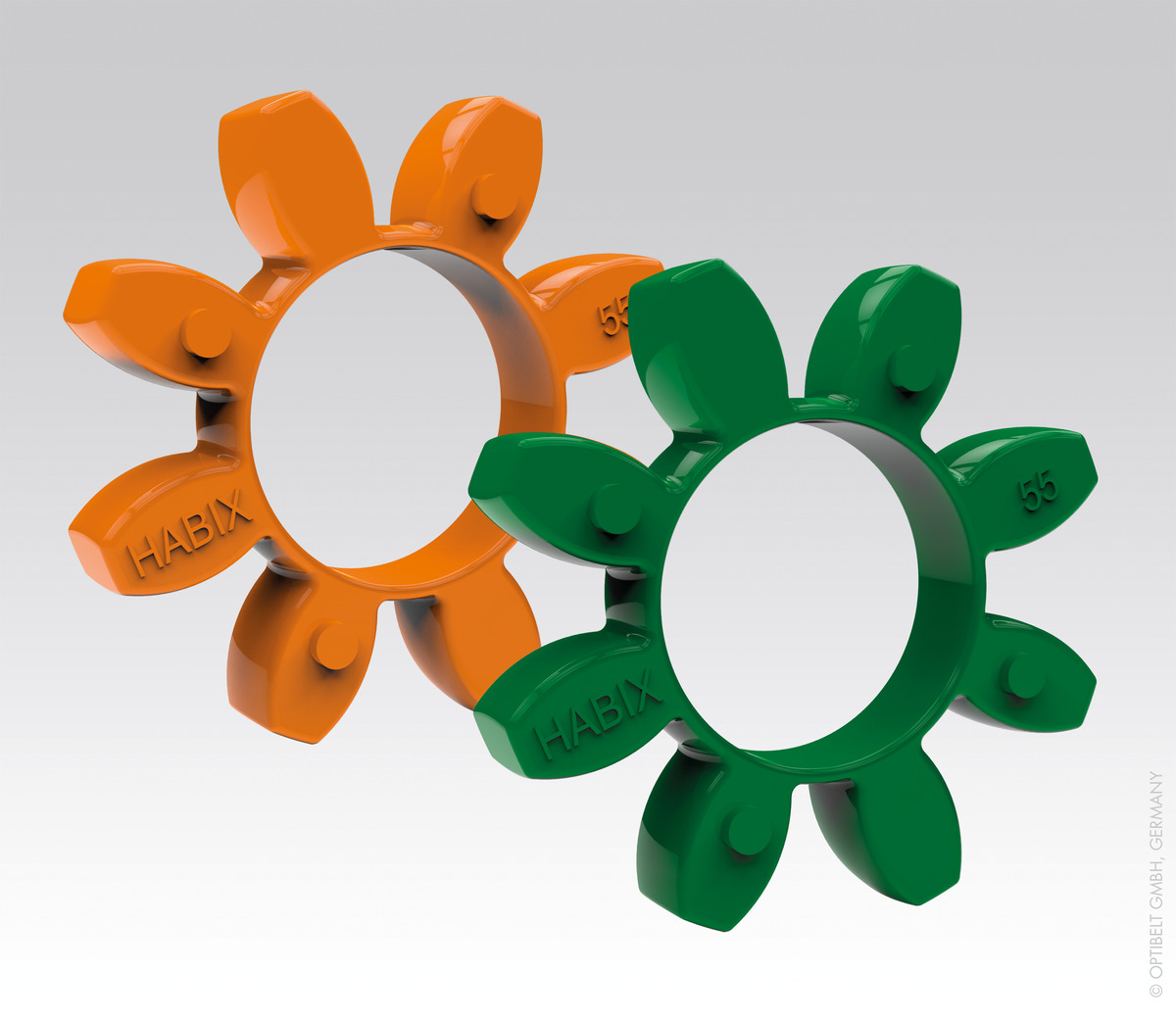 The precise star of the Habix®plus coupling is made of an extremely wear-resistant and temperature-resistant plastic. Up to size 48, the coupling is made of high-strength aluminum; from size 65, it is made of steel.